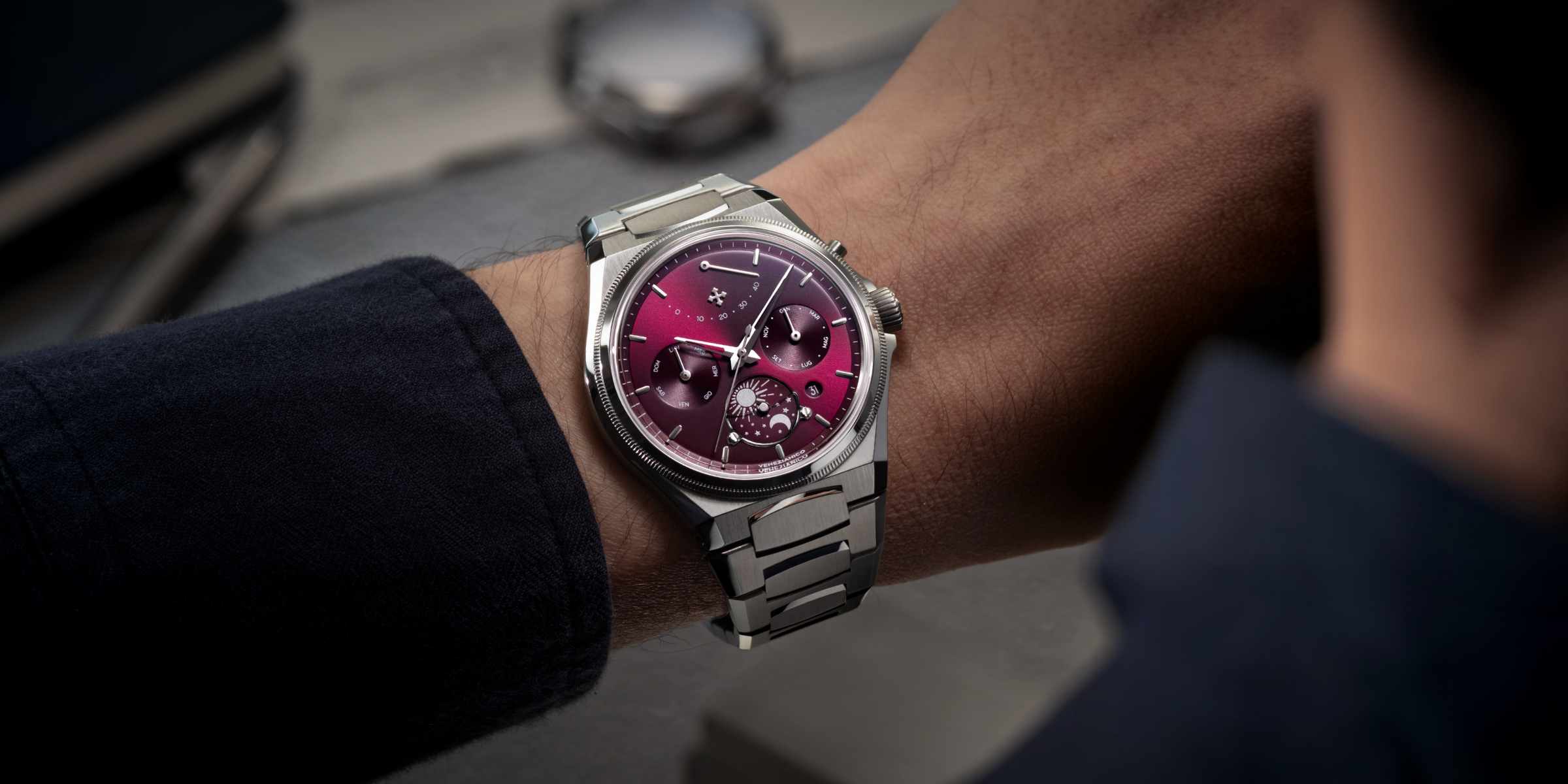 Inspired by Venice's Arsenale, the historic shipyard of innovation, Arsenale merges timeless finishes with bold, modern design. Its slim 8.95mm case and integrated bracelet with satin and polished details exude elegance and contemporary style.