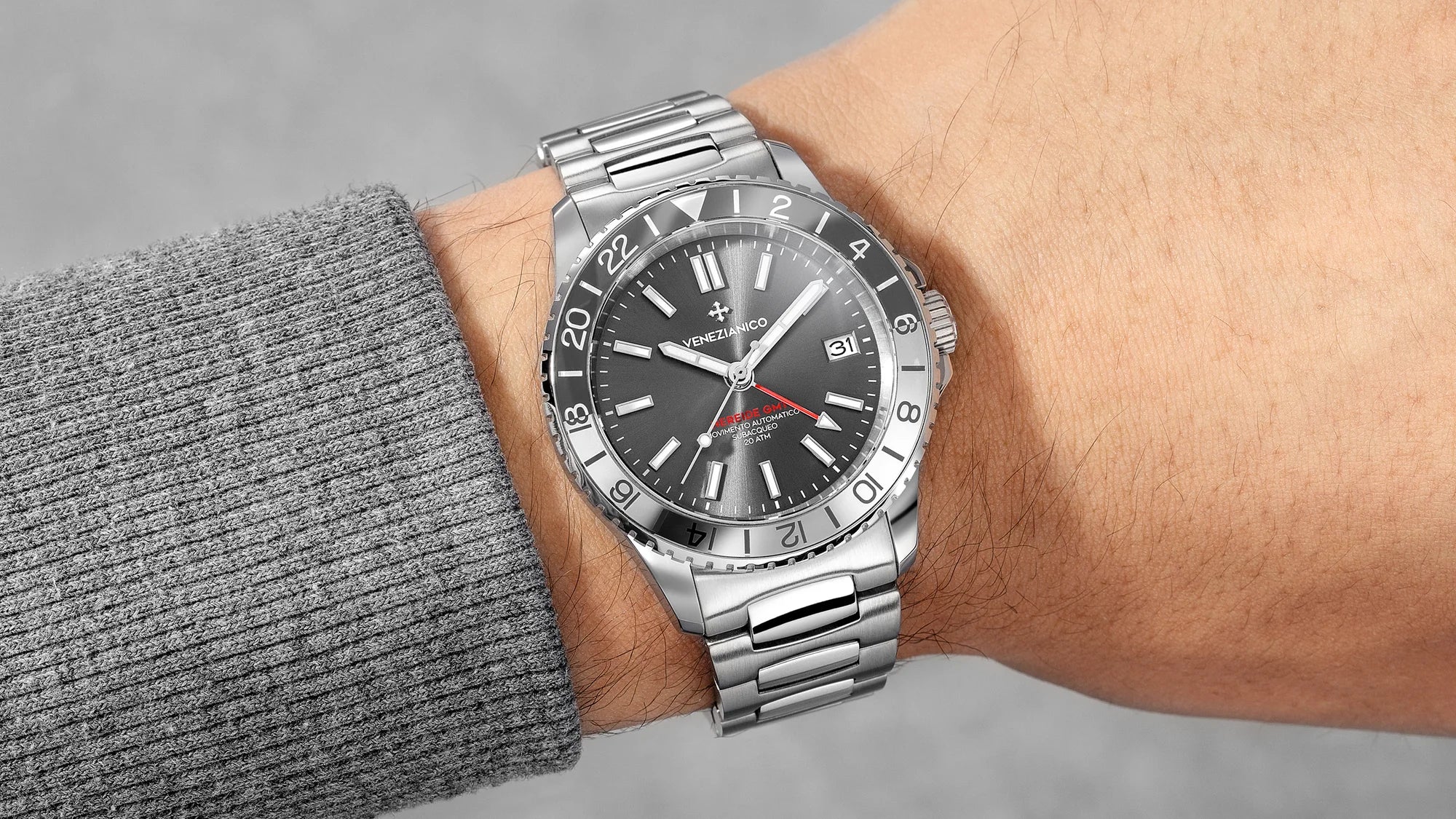Designed for those who travel the world with a pioneering spirit, our GMT watch perfectly embodies the sophistication of adventure. Drawing inspiration from the Nereide submarine, it blends refined design with the benefit of dual-time functionality. A true ally for modern globetrotters, it captures the essence of elegance in motion.