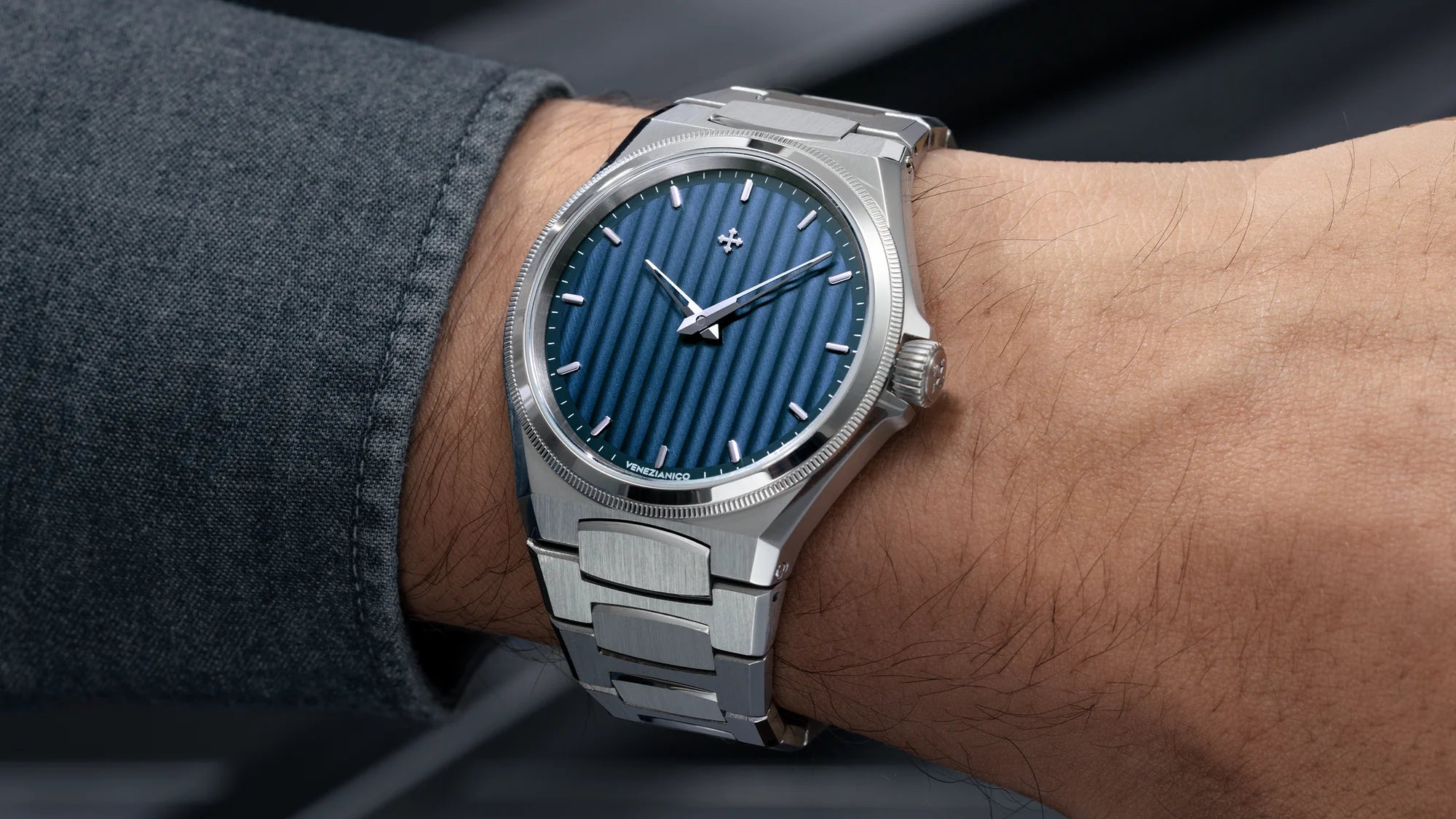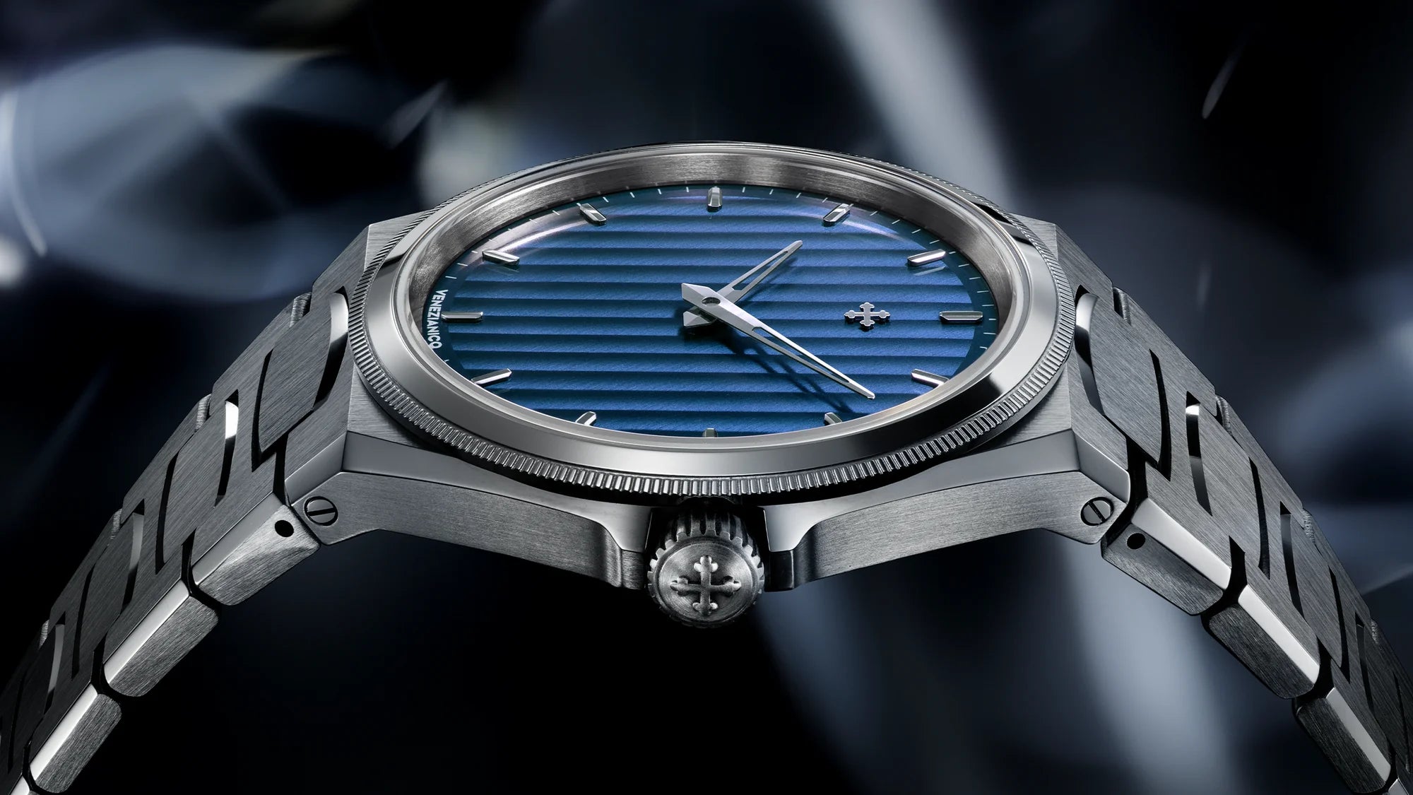 The design of this timepiece is inspired by the Arsenale of Venice, the ancient shipyard that for centuries represented the heart of technological innovation in the Serenissima. Arsenale combines classic finishes with a bold, modern design, creating a perfect balance between tradition and innovation. Its ultra-thin 8.95mm case and integrated bracelet, featuring satin-finished links with polished details, make it an elegant and contemporary model.