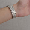 Sixteen different molds are required to manufacture this bracelet, whose design has been registered. The double finish, both glossy and satin, echoes that of the case and makes the central links stand out, providing elegance and balance. The butterfly clasp does not break the continuity of the design thanks to a perfect integration with the final central link.