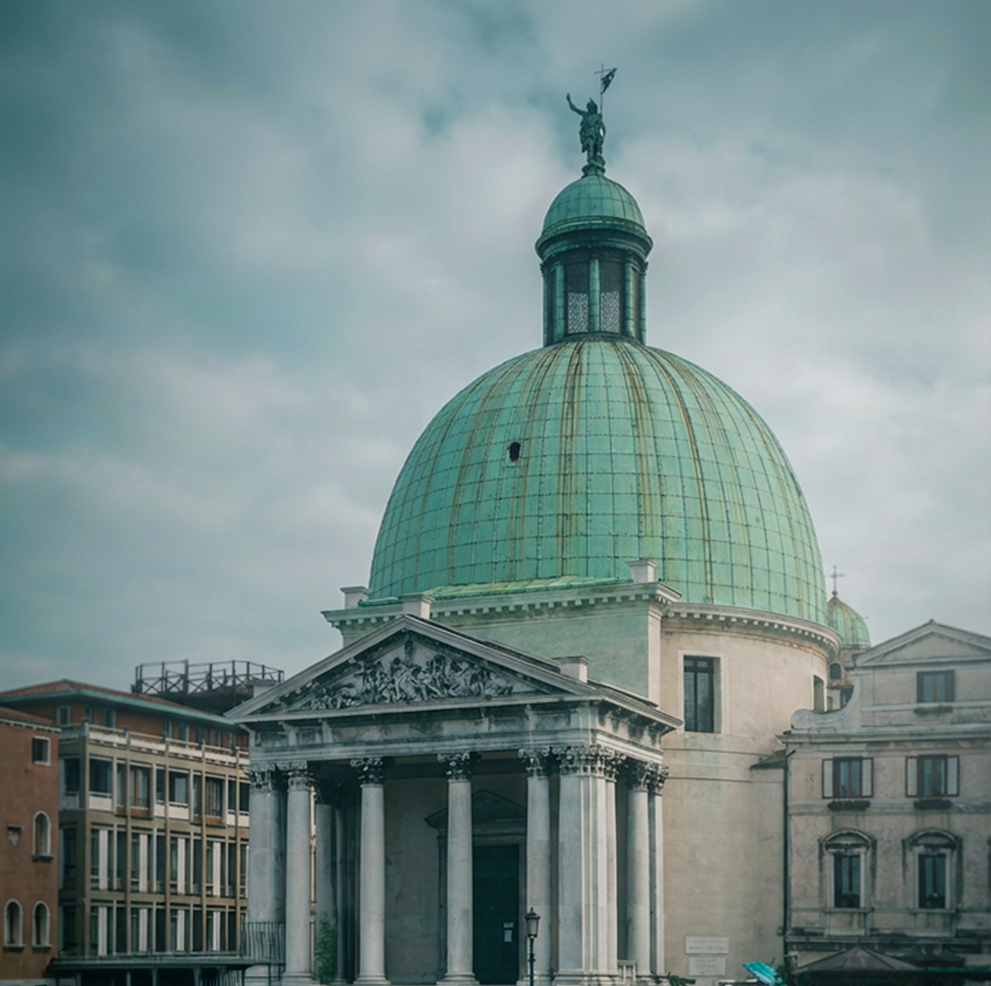 Copper domes, statues, and architectural details slowly change over the years, developing the green and turquoise hues that characterize the city's landscape. These nuances, born of time and the elements, constantly become a source of inspiration for our creations.