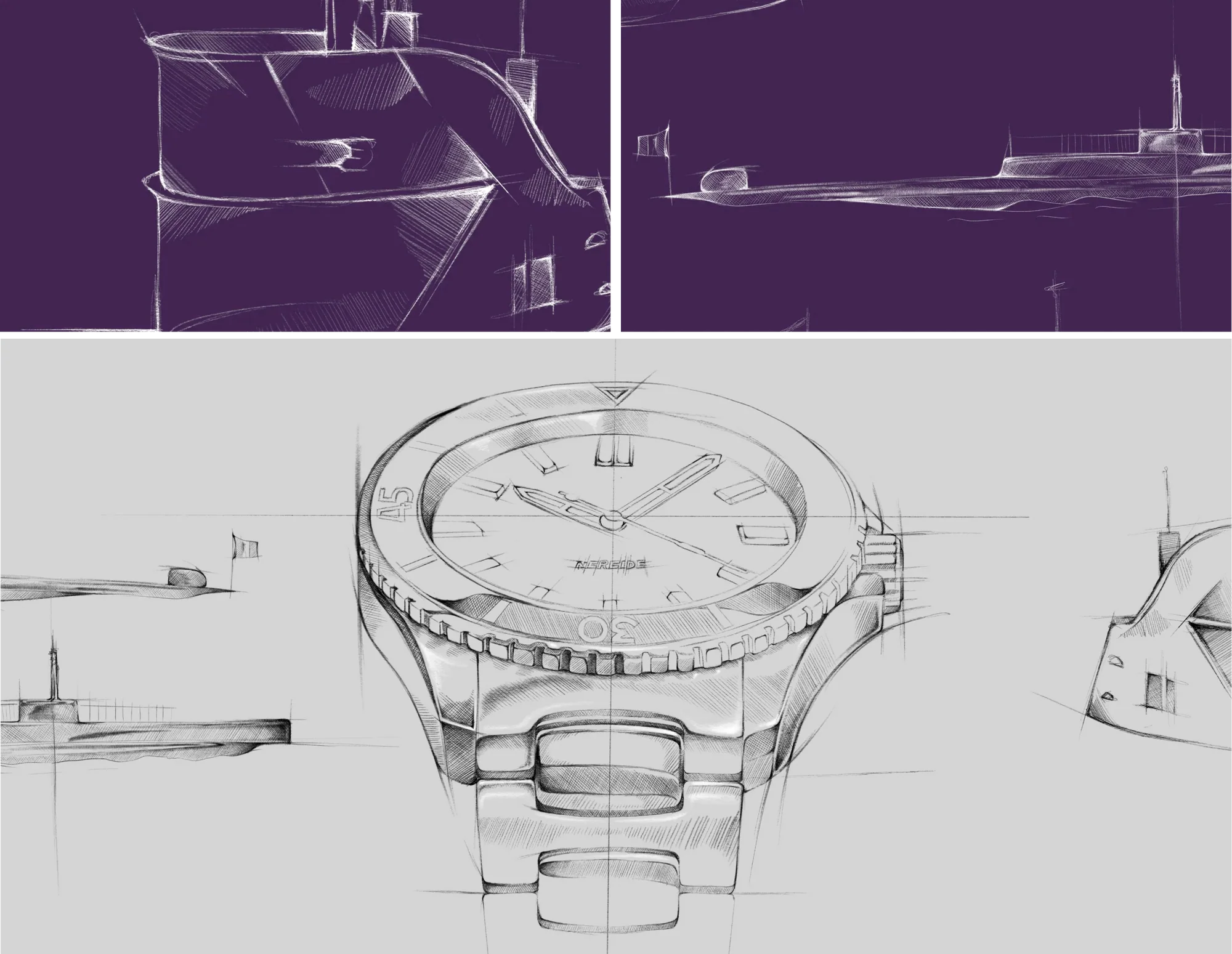 The submarine Nereide, which inspires the entire collection, is depicted submerged in the engraving at the center of the caseback, to remind how this watch doesn't compromise on underwater performance, retaining the ability to dive up to 200m deep and the rotating bezel that allows monitoring of dive times.