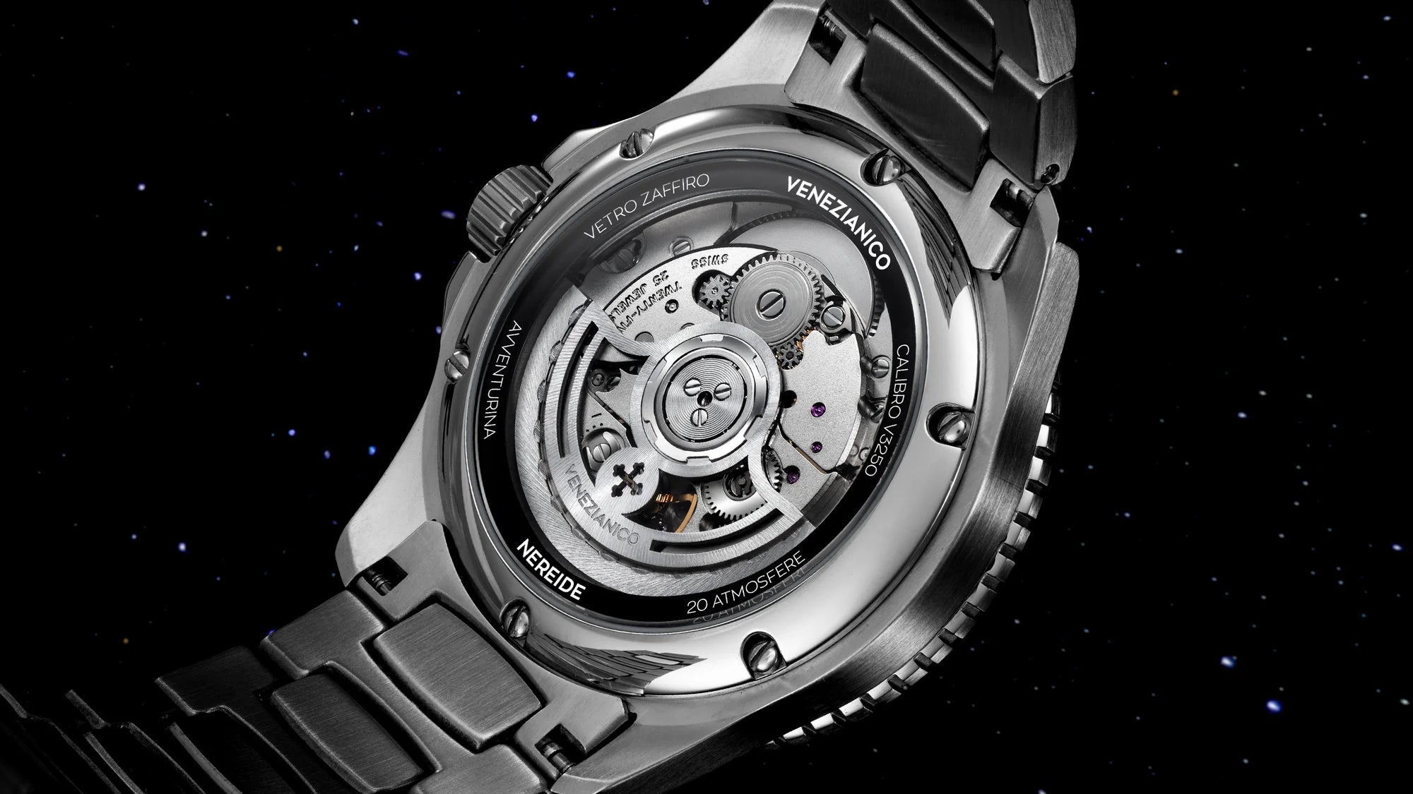 Our dive watch, water-resistant to a depth of 200 meters, takes its name from the Nereide submarine, a marvel of Venetian naval technology. This timepiece is engineered to endure strong stresses, making it particularly well-suited for water sports enthusiasts.