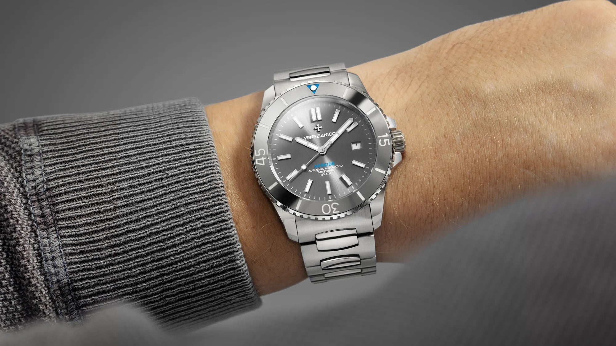 Our dive watch, which is water-resistant to a depth of 200 meters, takes its name from one of the last marvels of Venetian naval technology, the Nereide submarine. This timepiece is in fact designed to withstand strong stresses, making it particularly suitable for those who practice water sports.