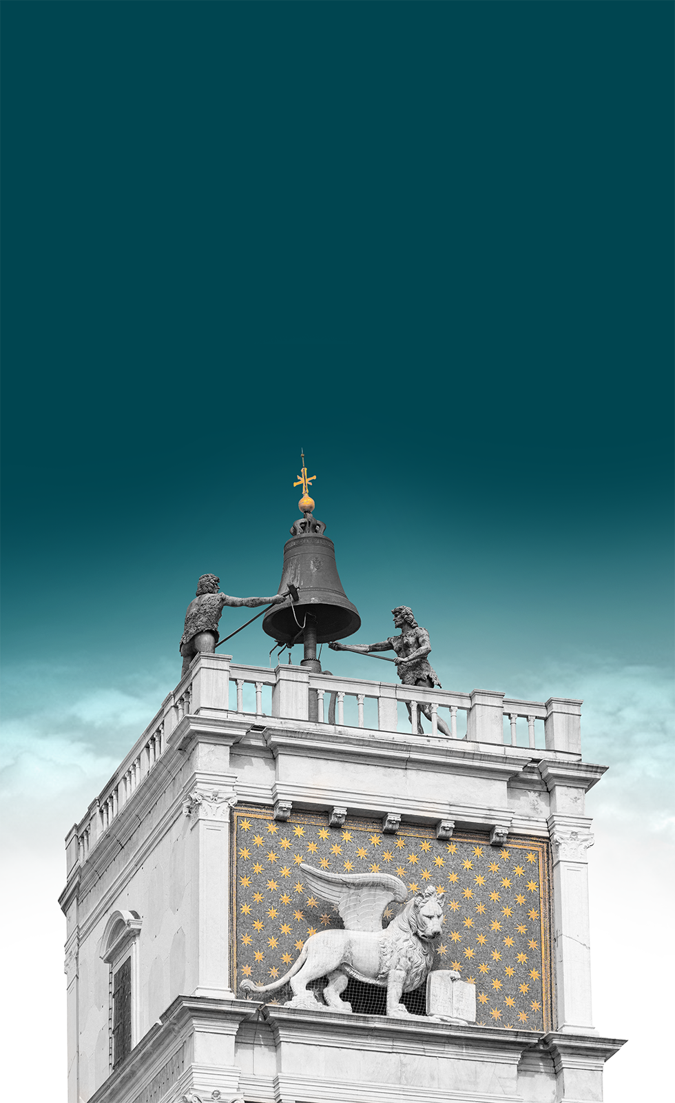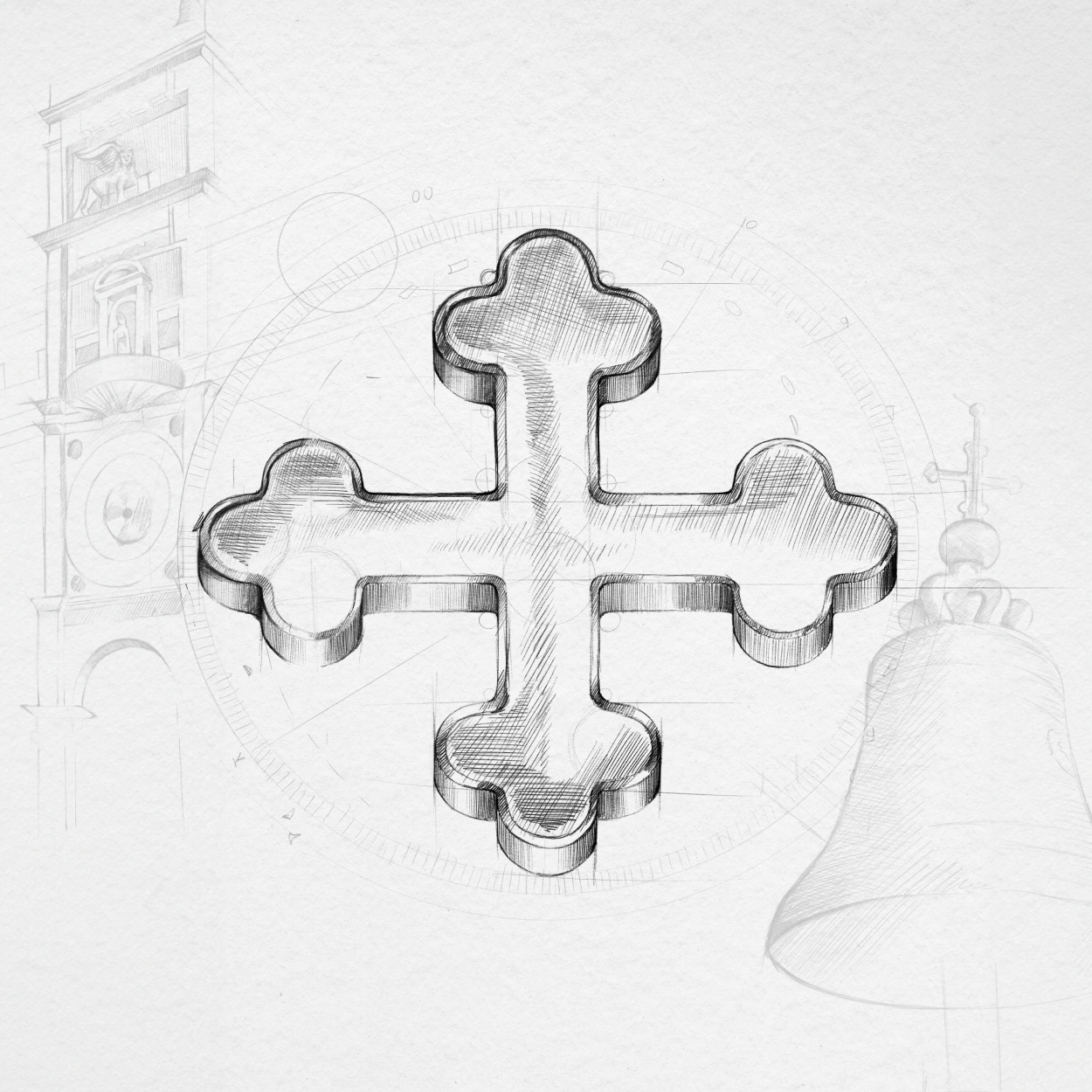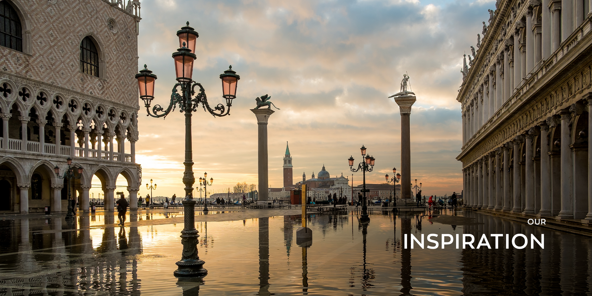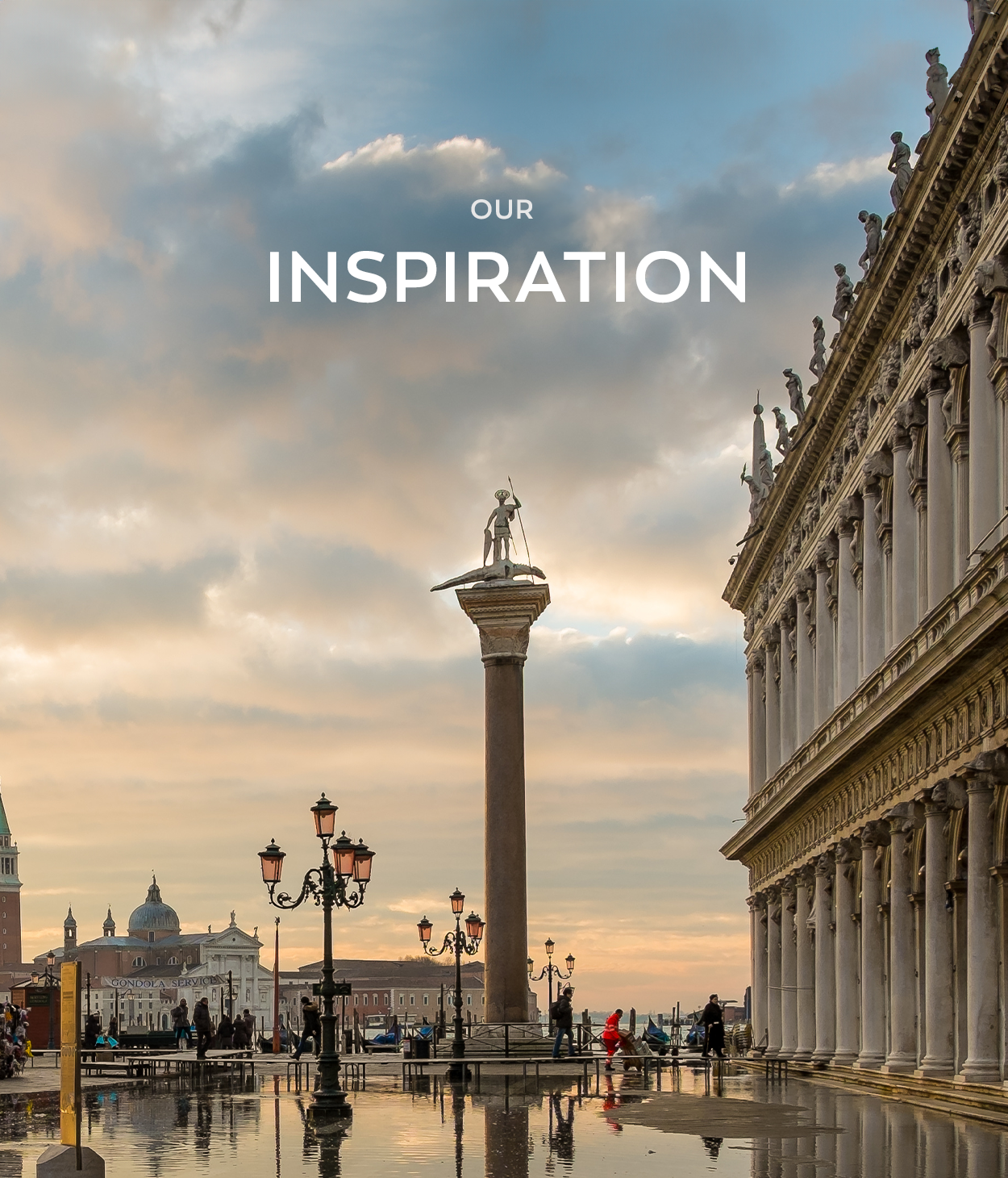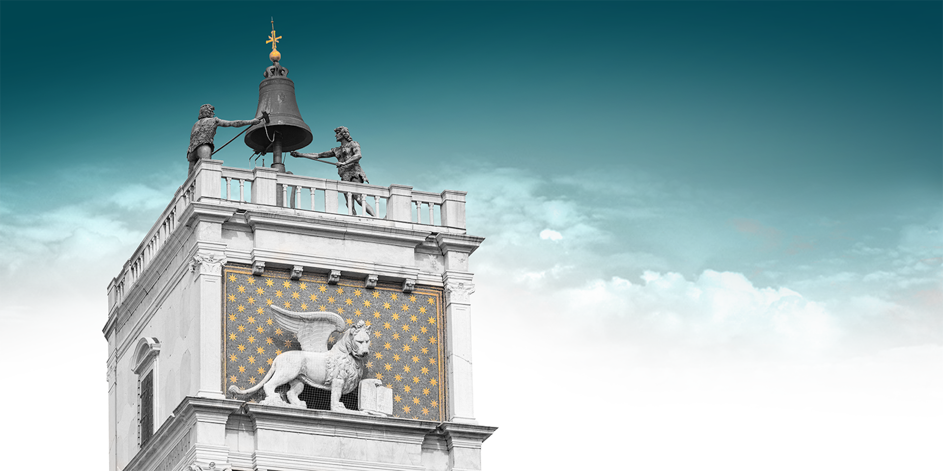 Our logo is inspired by the cross atop the Clock Tower, which stands on the north side of Piazza San Marco, the political heart of the city, and connects it to the Mercerie, the historic merchants' street. Positioned at the crossroads of politics and commerce, it has marked the rhythm of the city since the 15th century.
