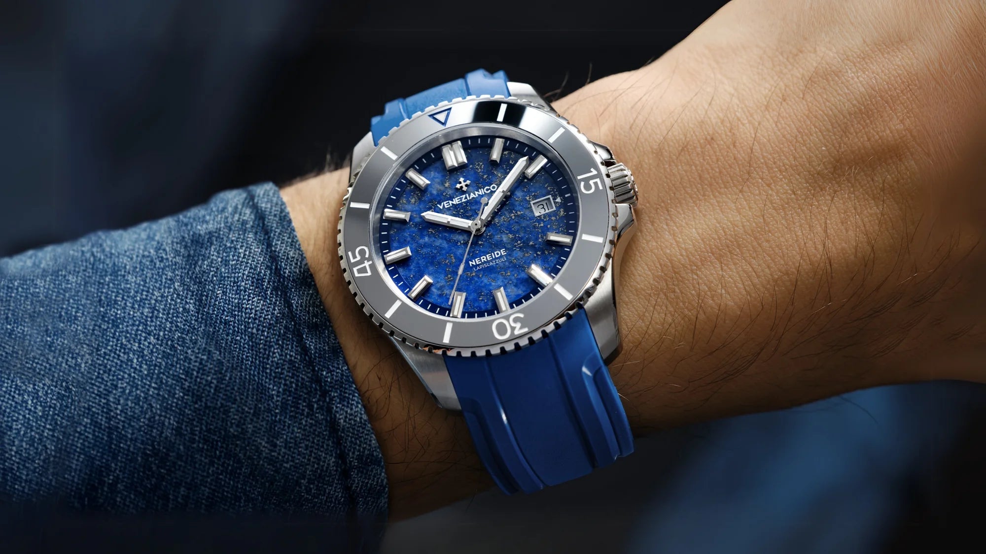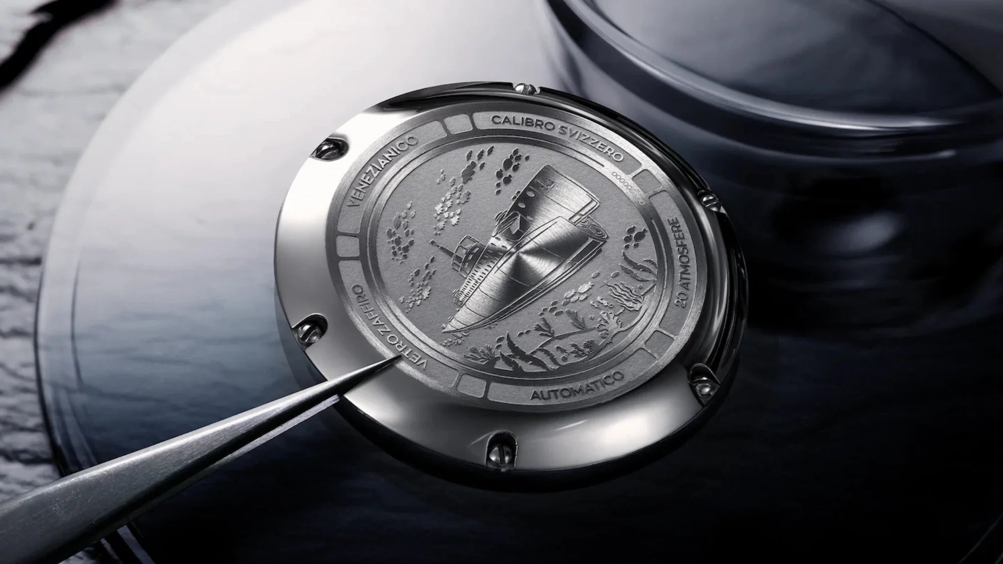 "Our dive watch, water-resistant up to 200 meters, is inspired by the Nereide submarine, a marvel of Venetian naval engineering dating back to 1919. Designed to withstand intense conditions, it is perfect for water sports enthusiasts"