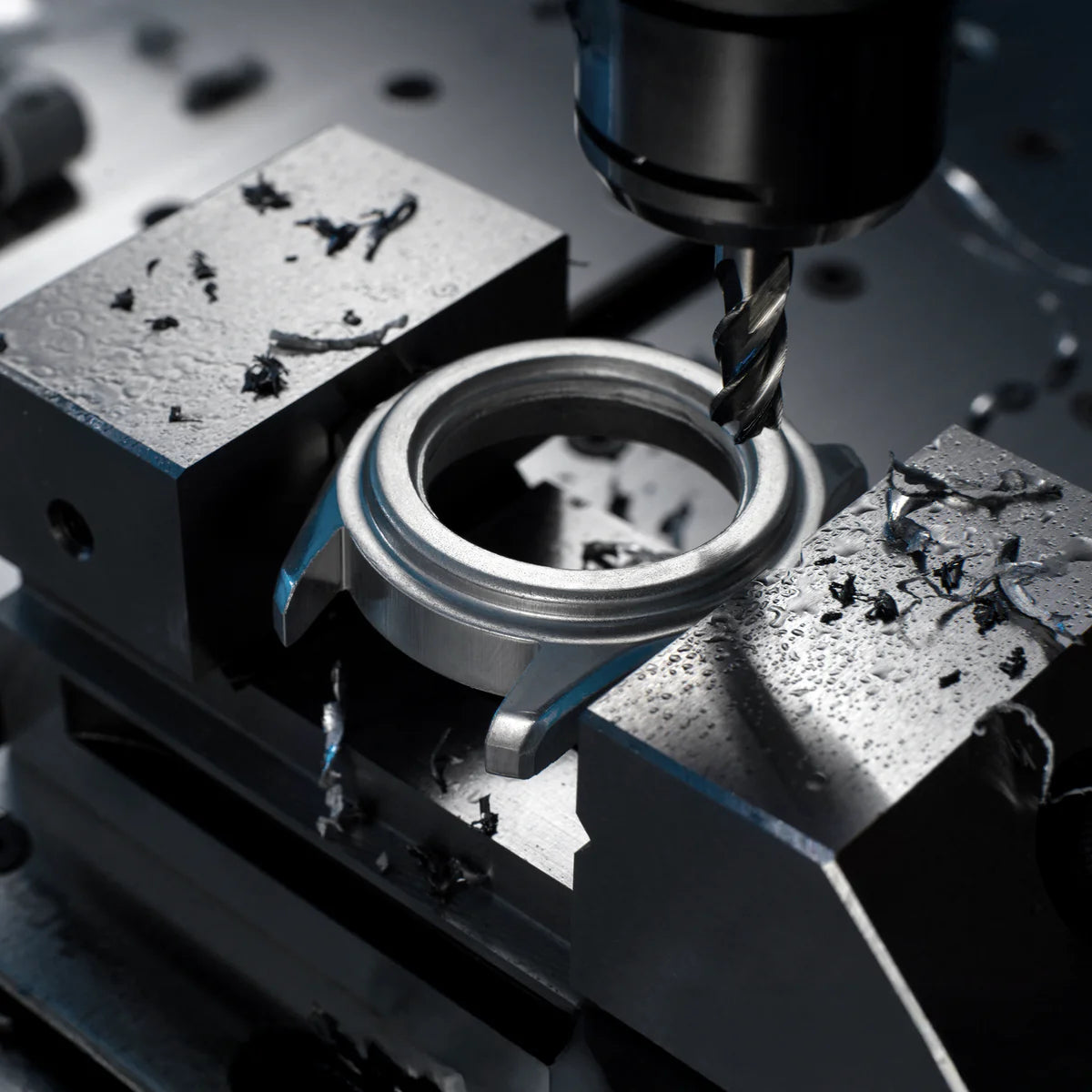 The production of a titanium case starts with refining the raw metal into ingots or bars. A mold gives it an initial shape, followed by precision milling using specialized tools and slower cutting speeds to avoid overheating. Lighter and stronger than steel, titanium requires careful handling. Each case is then hand-finished to ensure meticulous detail and the perfect final look.