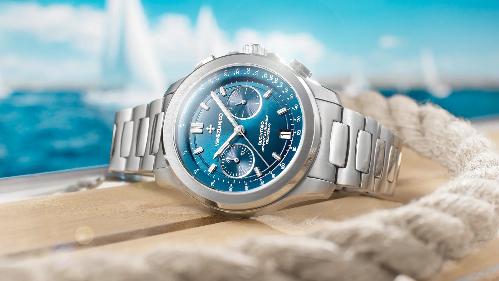 Bucintoro is our chronograph, a watch capable of measuring specific time intervals, designed to combine accuracy and elegance in a contemporary design. Its name is inspired by the Doge's ceremonial galley, the flagship of the Venetian Republic. Traditionally, this ship led the way in the Regata Storica, featuring Venice's finest rowers in what was the most prestigious sporting event on the Grand Canal.