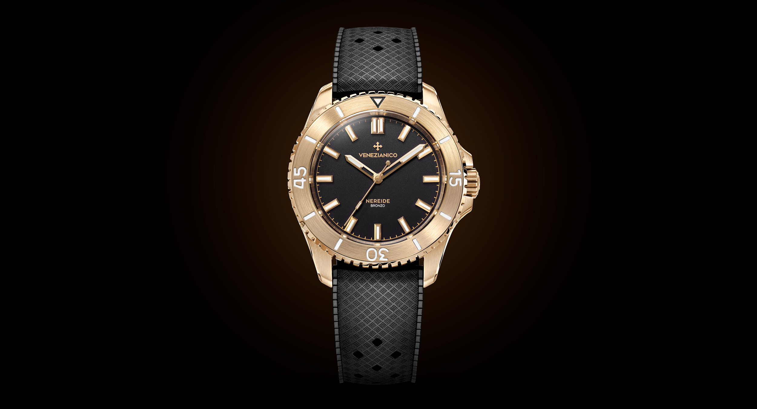 For the first time, we’re introducing a 39mm Nereide with a screw-down case back—designed for professional use. Crafted from 316L stainless steel, the case back prevents direct contact between the skin and the bronze patina. It features an engraving of the Four Horses of St. Mark, a symbol of the deep significance this metal holds in Venetian artisanal culture.