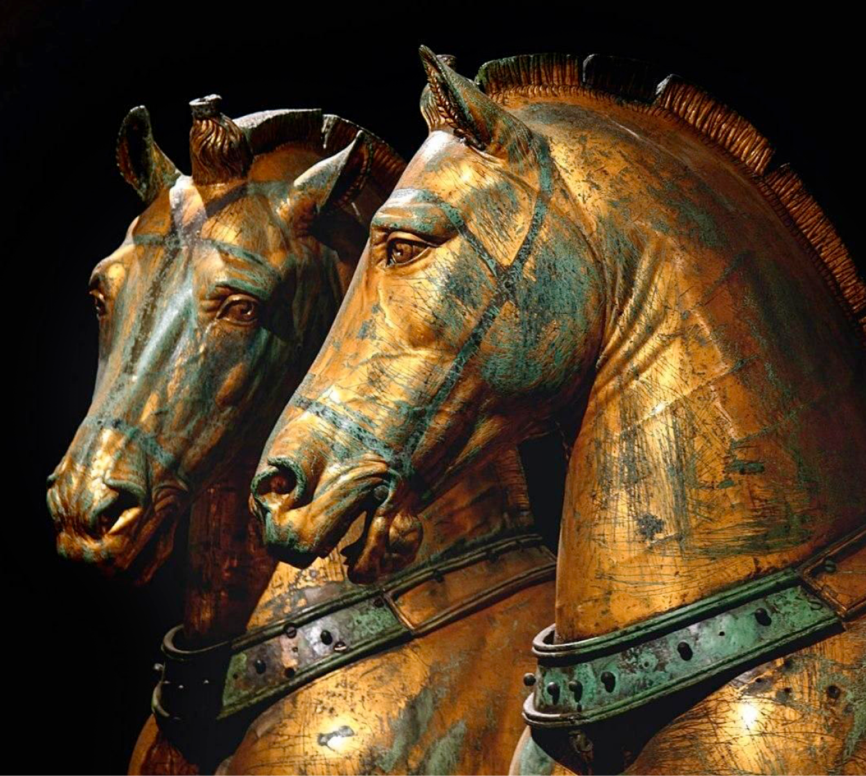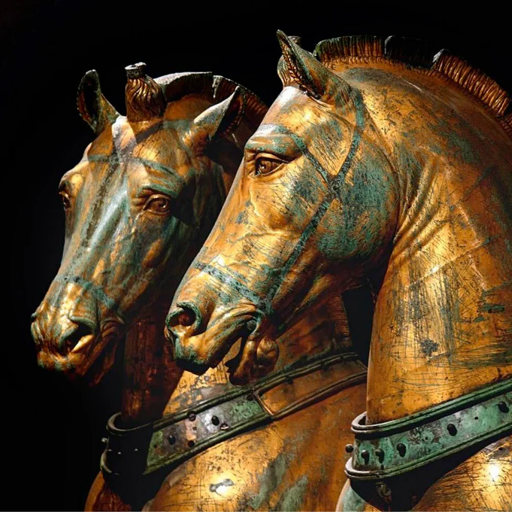 The Nereide Bronze draws inspiration from the magnificence of the Horses of St. Mark's, a symbol of power and prosperity in Venice. These bronze horses, forged in ancient Greece, found their home on the Basilica of St. Mark in the 13th century, narrating the story of conquests and greatness of the lagoon city. The art of bronze craftsmanship, an integral part of Venetian know-how, is honored by this unique Nereide, combining the grandeur of the past with contemporary artisanal mastery.
