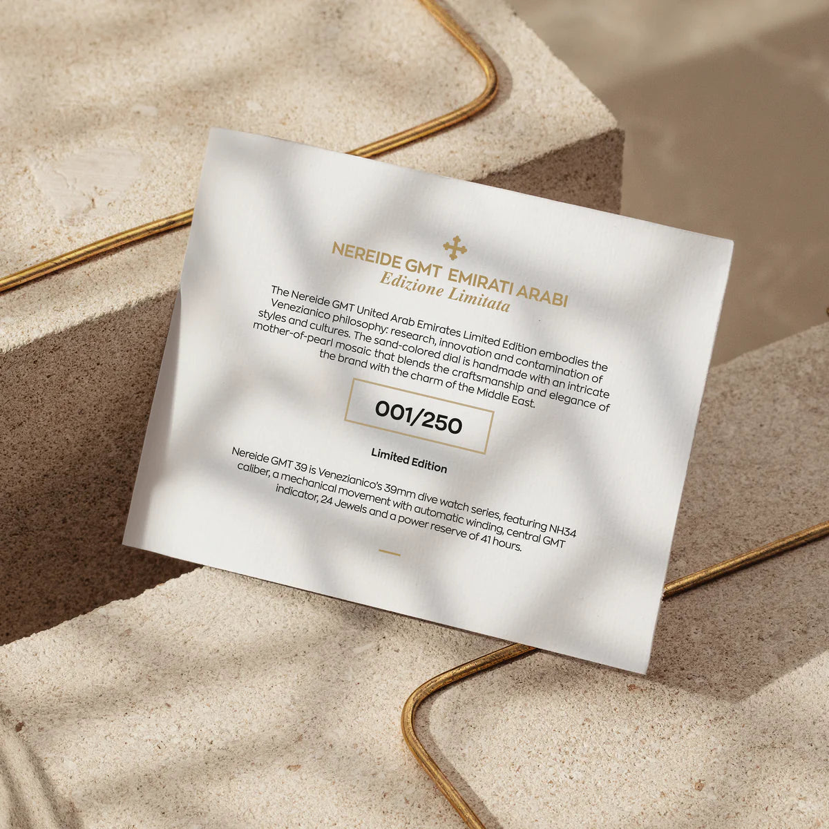 We have decided to produce 250 units dedicated to the United Arab Emirates and our passionate collectors in the Middle East. Each watch is distinguished by a unique serial number, engraved on the case back and documented on the Certificate of Authenticity.