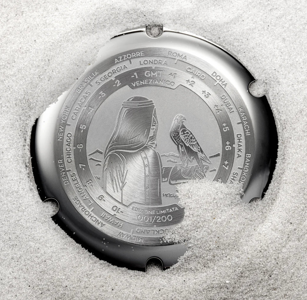 The engraving on the case back celebrates the art of falconry. The breeding of the falcon as a hunting animal is 5000 years old and was imported into Qatar by the Bedouin tribes. The falcon is now one of the national symbols of the country. The progressive serial number of each watch belonging to this Limited Edition is displayed at 6 o'clock.