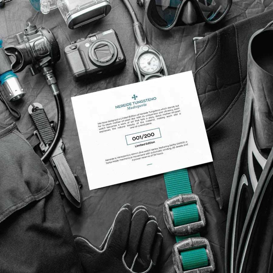 Our dive watch, water-resistant to a depth of 200 meters, takes its name from the Nereide submarine, a marvel of Venetian naval technology. This timepiece is engineered to endure strong stresses, making it particularly well-suited for water sports enthusiasts.
