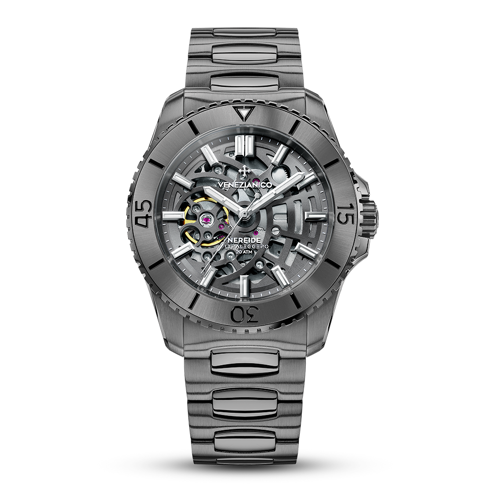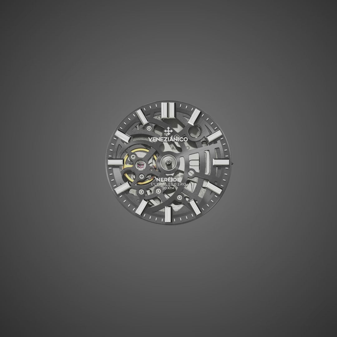 Nereide Ultraleggero embodies a sophisticated, technical and innovative design. The dial of the watch is harmoniously balanced following the mathematical ratio of the golden ration of Leonardo da Vinci. This gives a balanced arrangement of the elements, forming a fascinating and structured aesthetic.