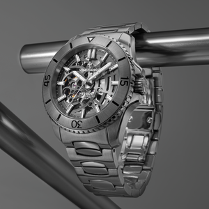 Our skeleton dive watch, water-resistant up to 200 meters, combines innovative design with exceptional durability. Engineered for performance, it’s the perfect companion for water sports and outdoor adventures.