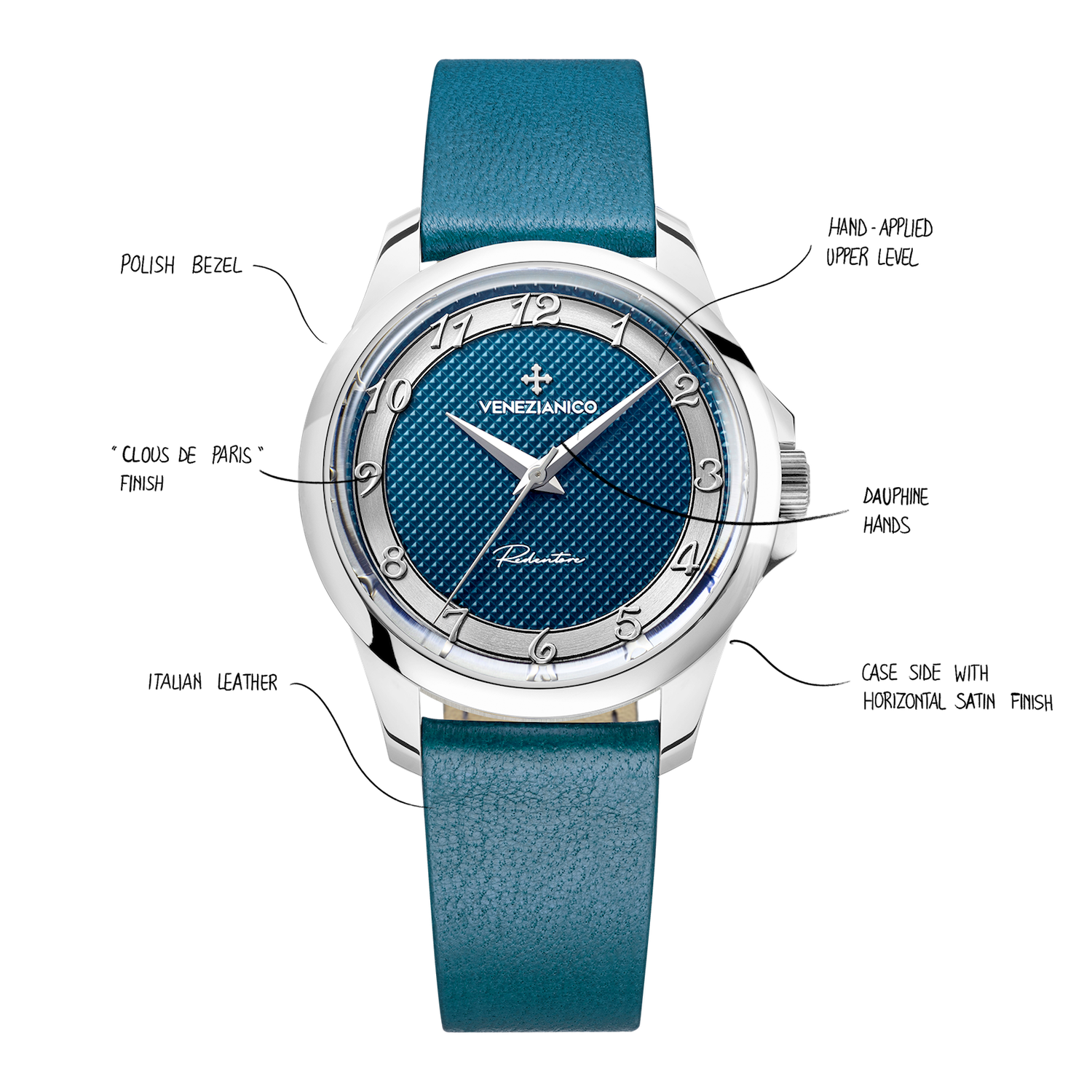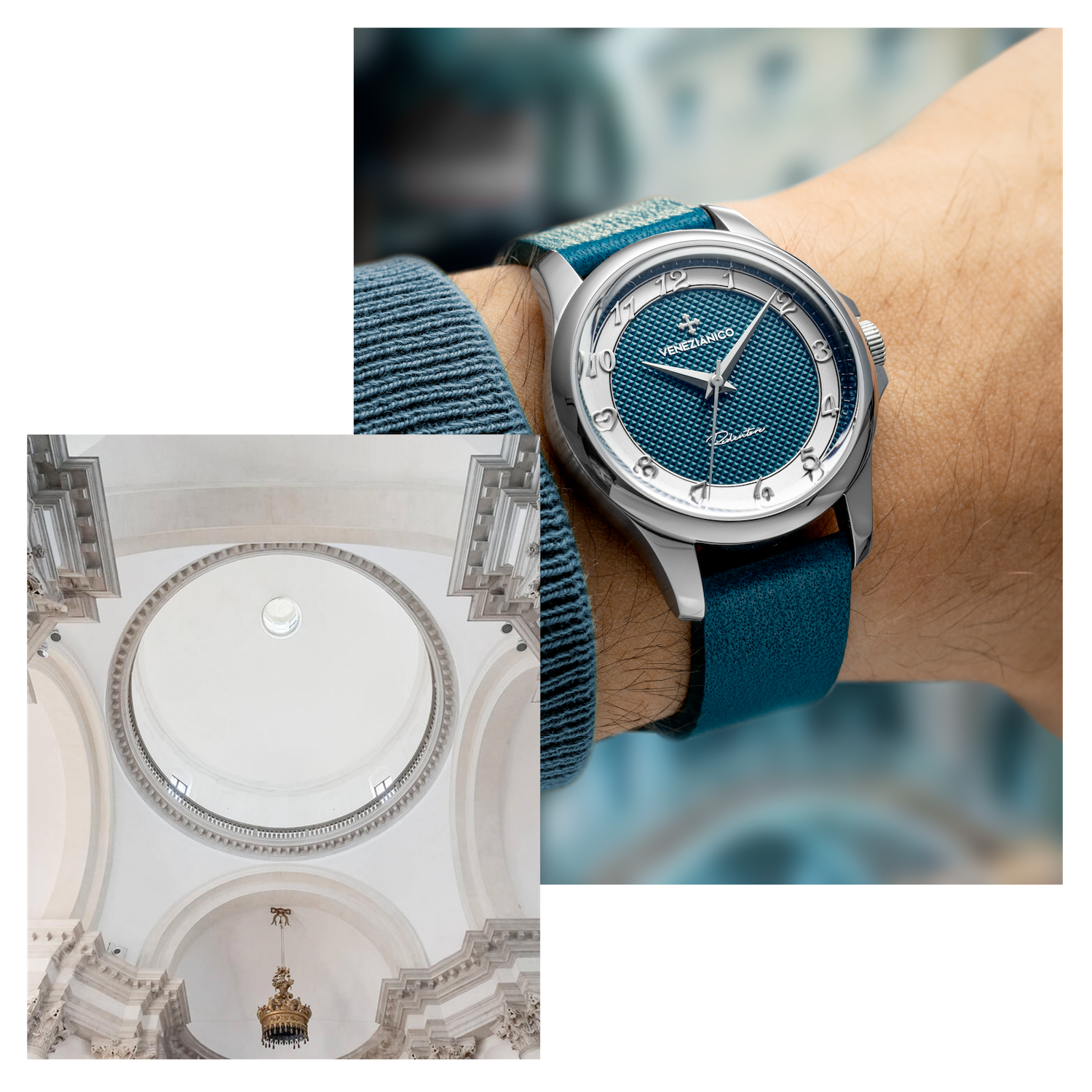 The design of this watch is inspired by the Basilica del Redentore, the masterpiece of the Venetian architect Andrea Palladio, known as the father of the Neoclassical style. The balance of its shapes and proportions gives the case an elegant and contemporary look, making it an extremely versatile model.