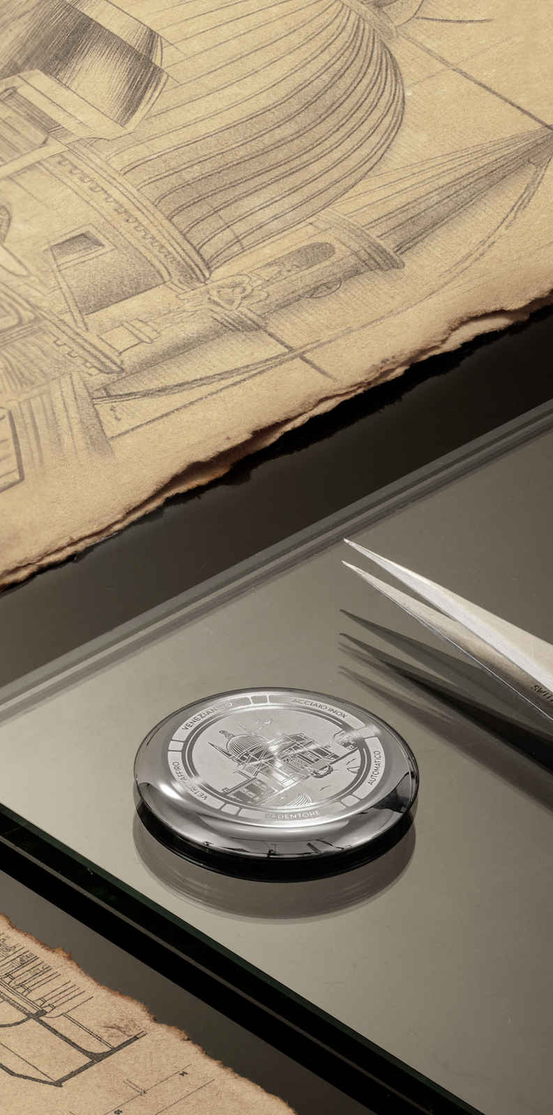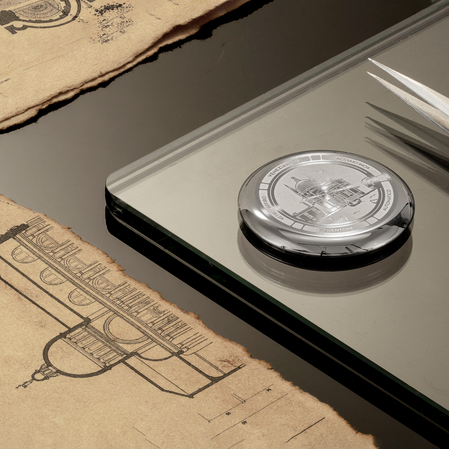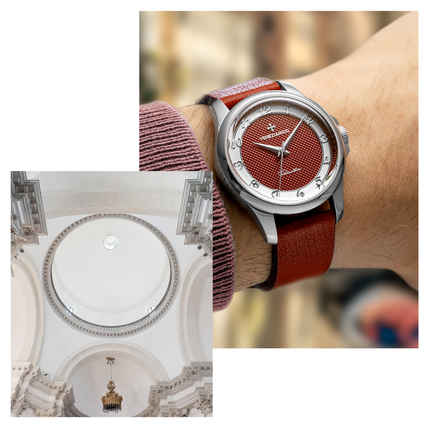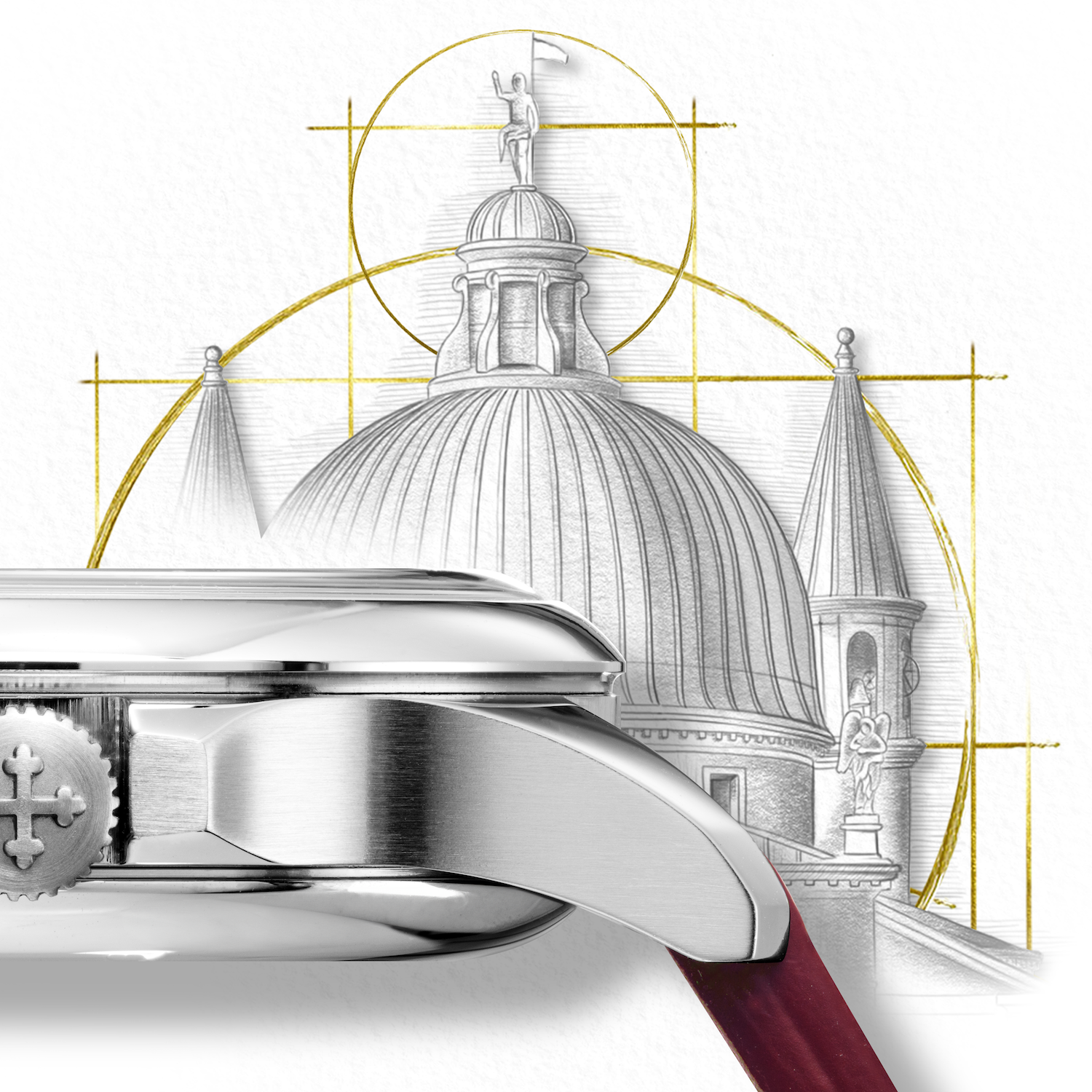 The design of this watch is inspired by the Basilica del Redentore, the masterpiece of the Venetian architect Andrea Palladio, known as the father of the Neoclassical style. The balance of its shapes and proportions gives the case an elegant and contemporary look, making it an extremely versatile model.