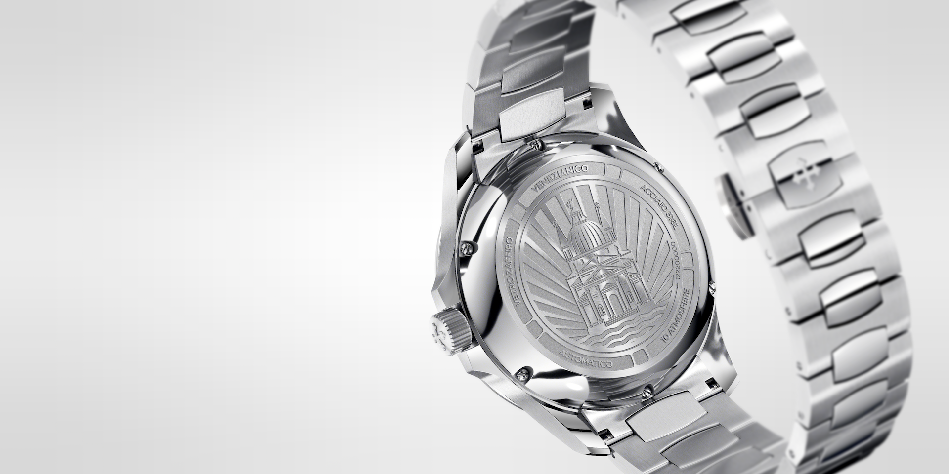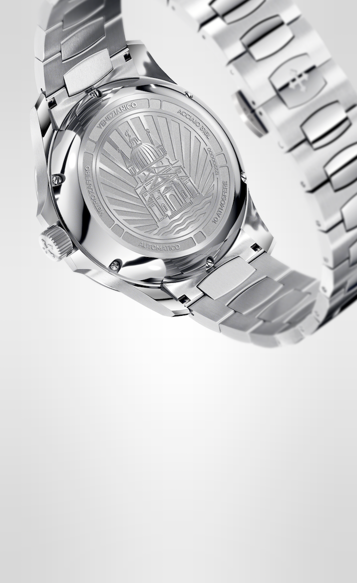 The design of this watch is inspired by the Basilica del Redentore, the masterpiece of the Venetian architect Andrea Palladio, known as the father of the Neoclassical style. The balance of its shapes and proportions gives the case an elegant and contemporary look, making it an extremely versatile model.