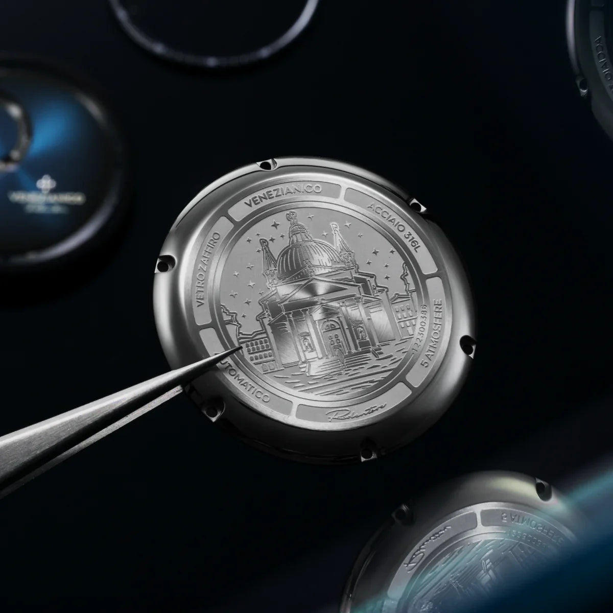 Our classic watch, the epitome of timeless elegance, takes its name from the Basilica del Redentore, an architectural masterpiece by Andrea Palladio and a symbol of Venetian heritage. This timepiece embodies refined craftsmanship and versatility, seamlessly complementing both formal and everyday moments.