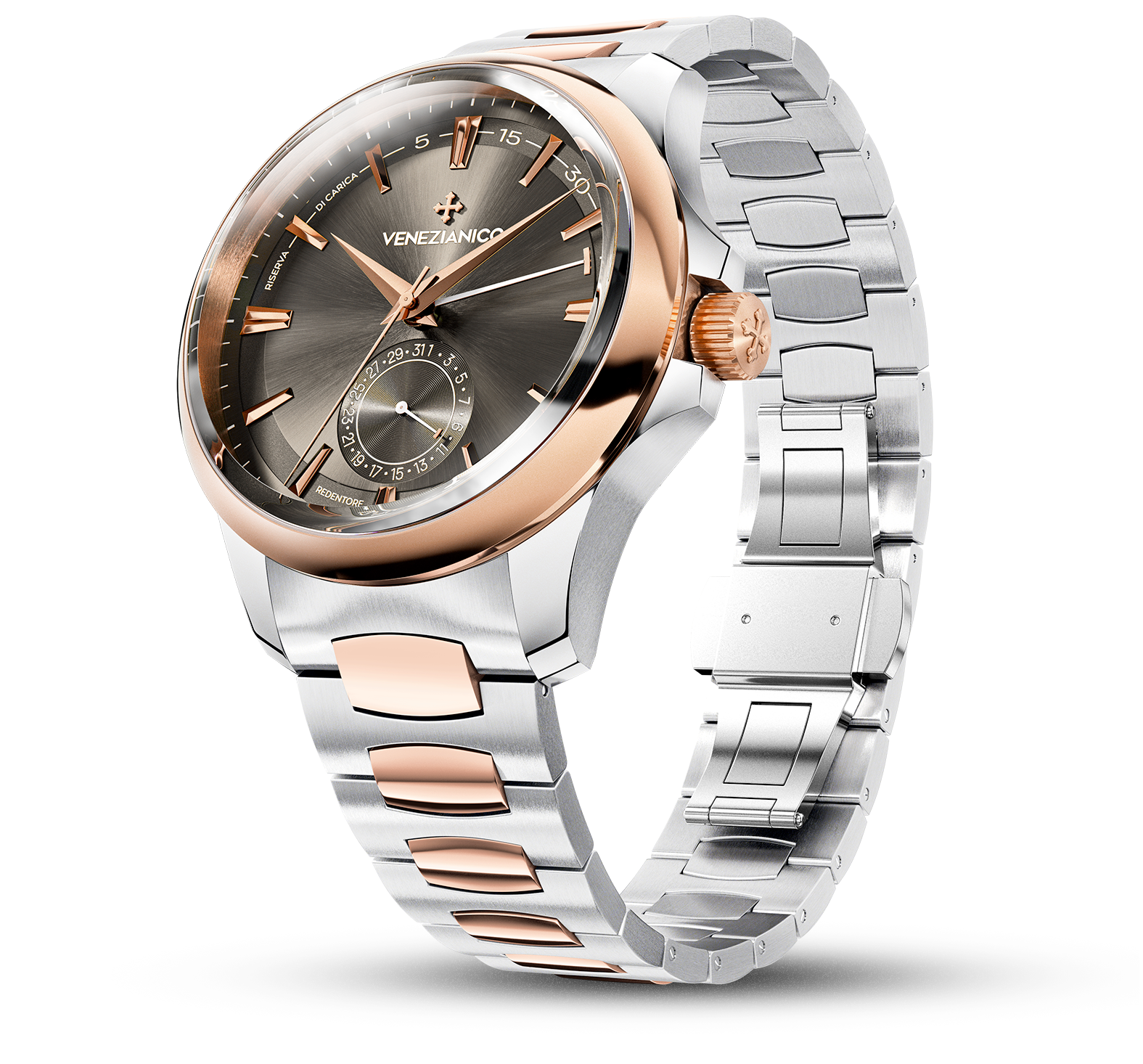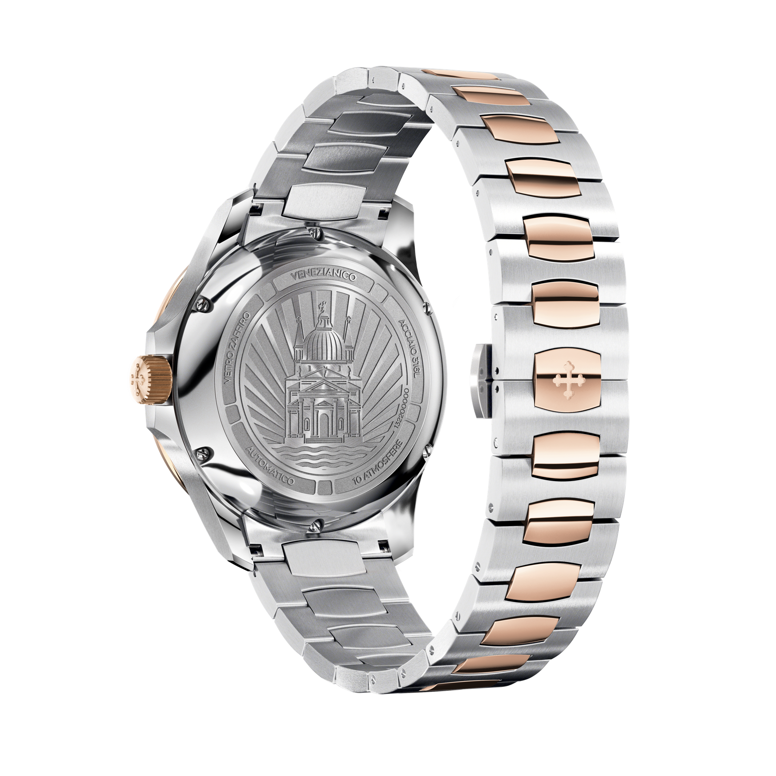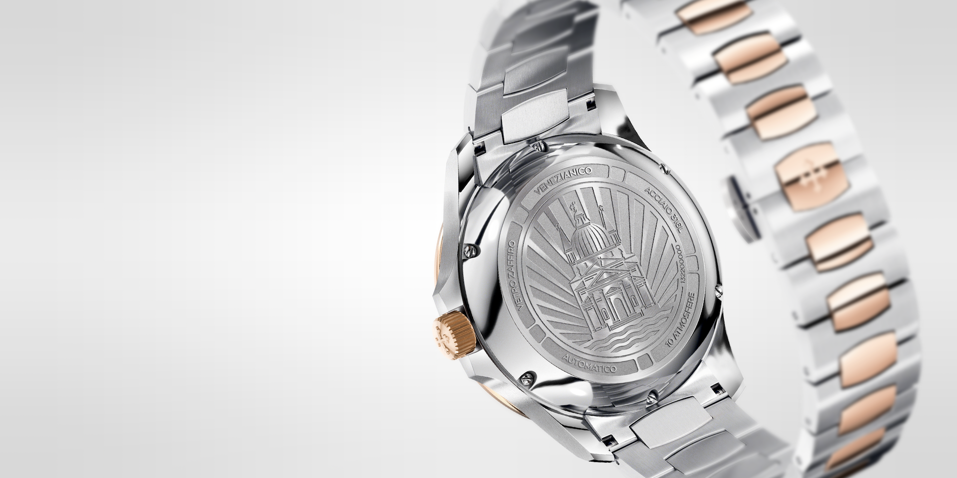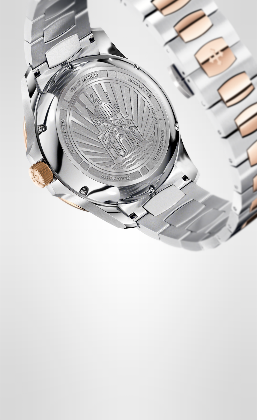 The design of this watch is inspired by the Basilica del Redentore, the masterpiece of the Venetian architect Andrea Palladio, known as the father of the Neoclassical style. The balance of its shapes and proportions gives the case an elegant and contemporary look, making it an extremely versatile model.